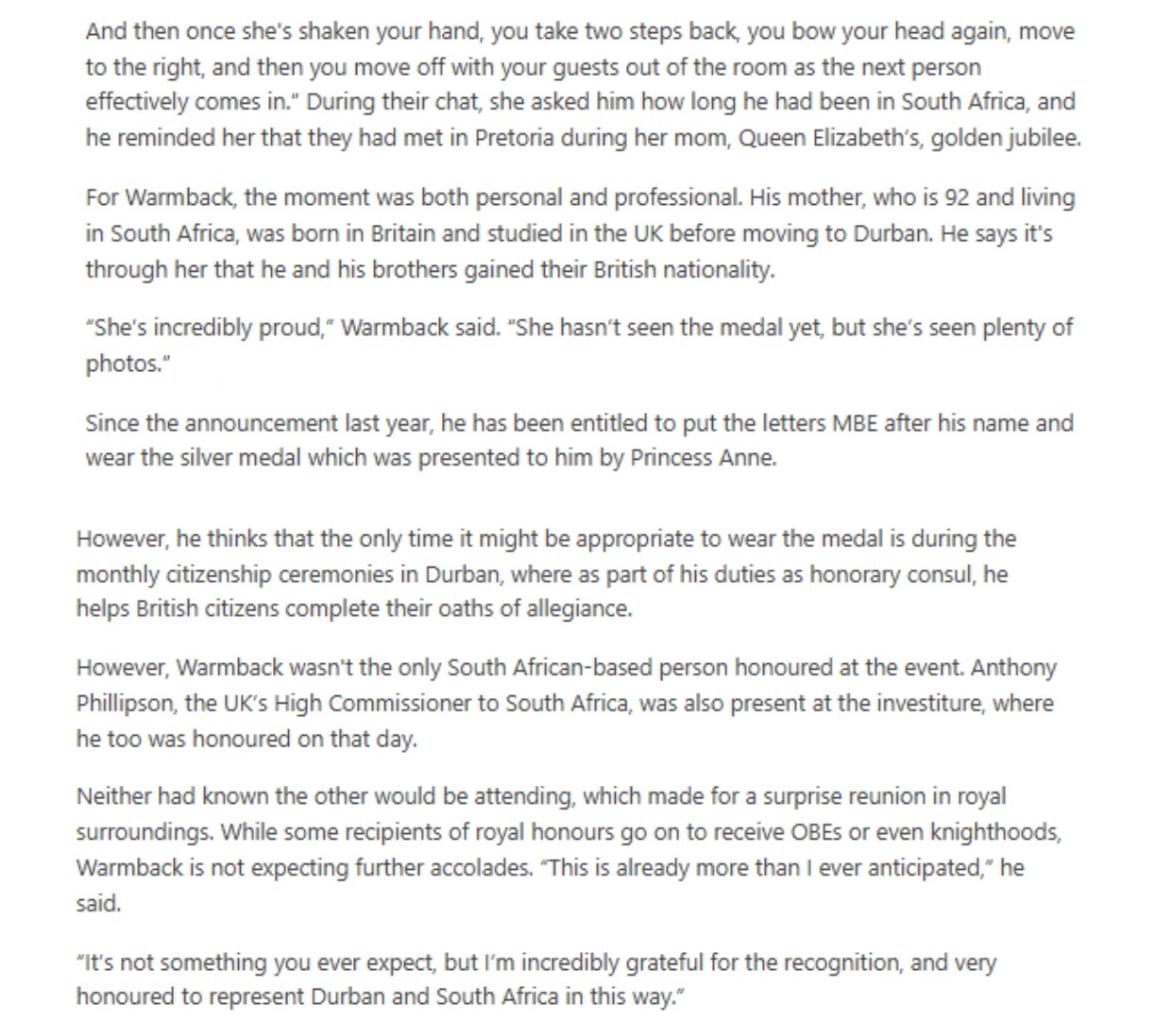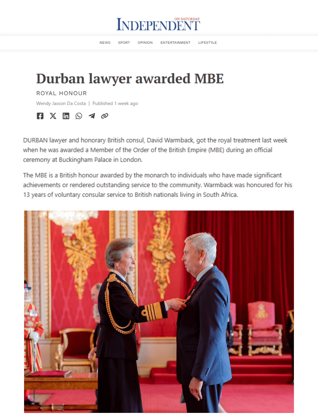 Attorney(s): David Warmback MBE, Partner, Durban ,