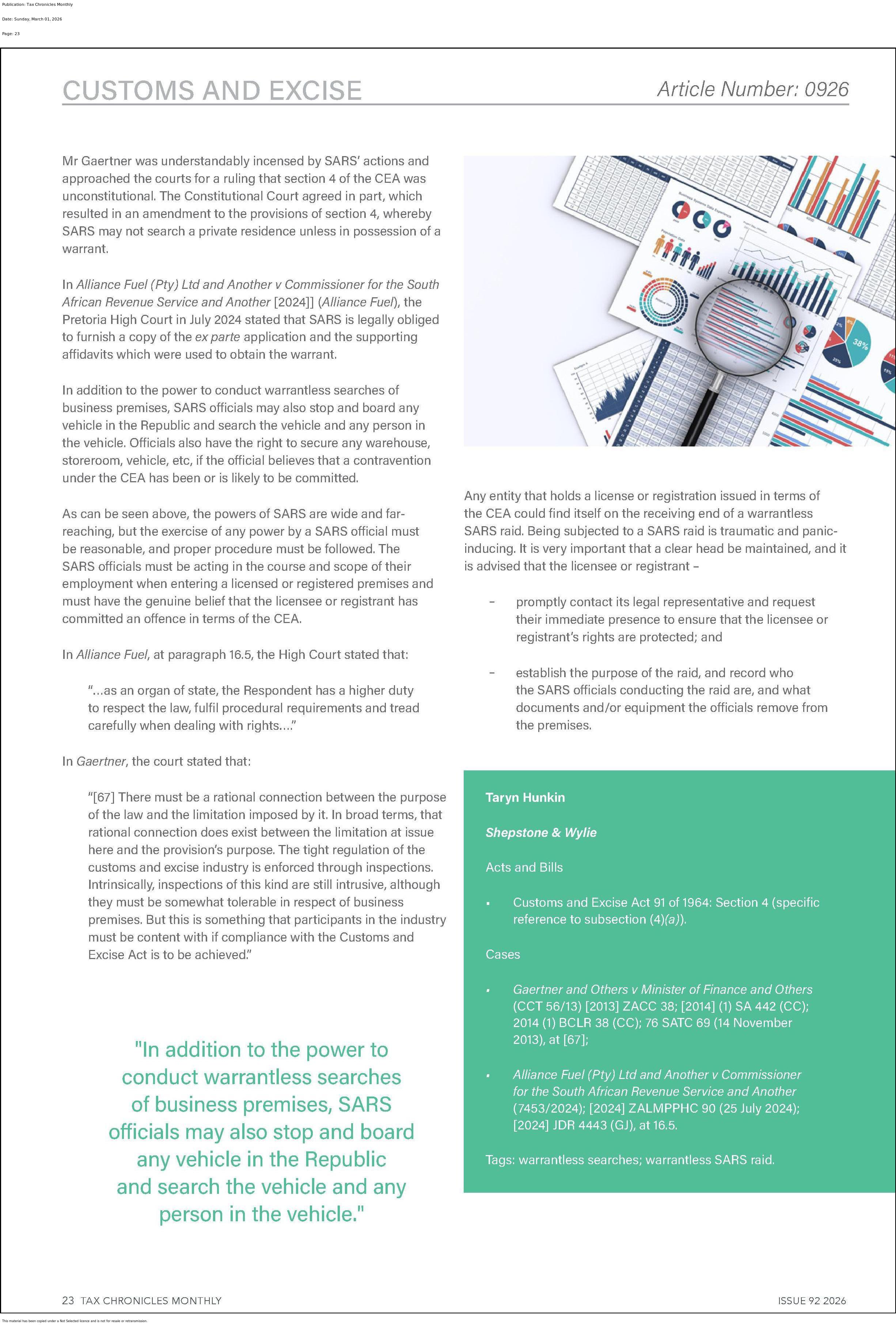 SARS' Search and Seizure Powers