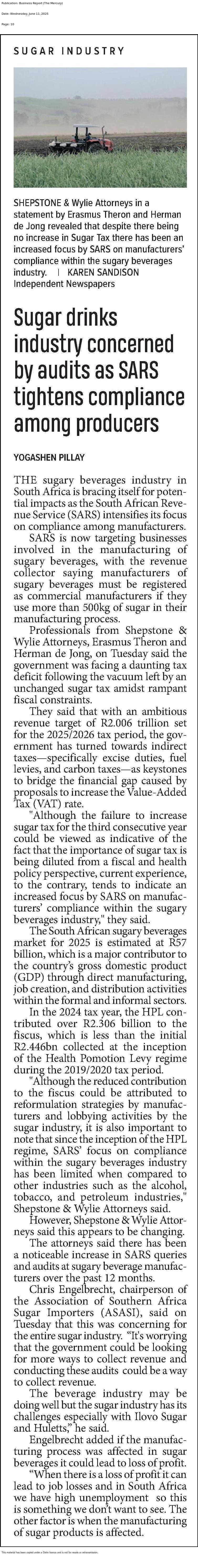 Sugar drinks industry concerned by audits as SARS tightens compliance amoung producers
