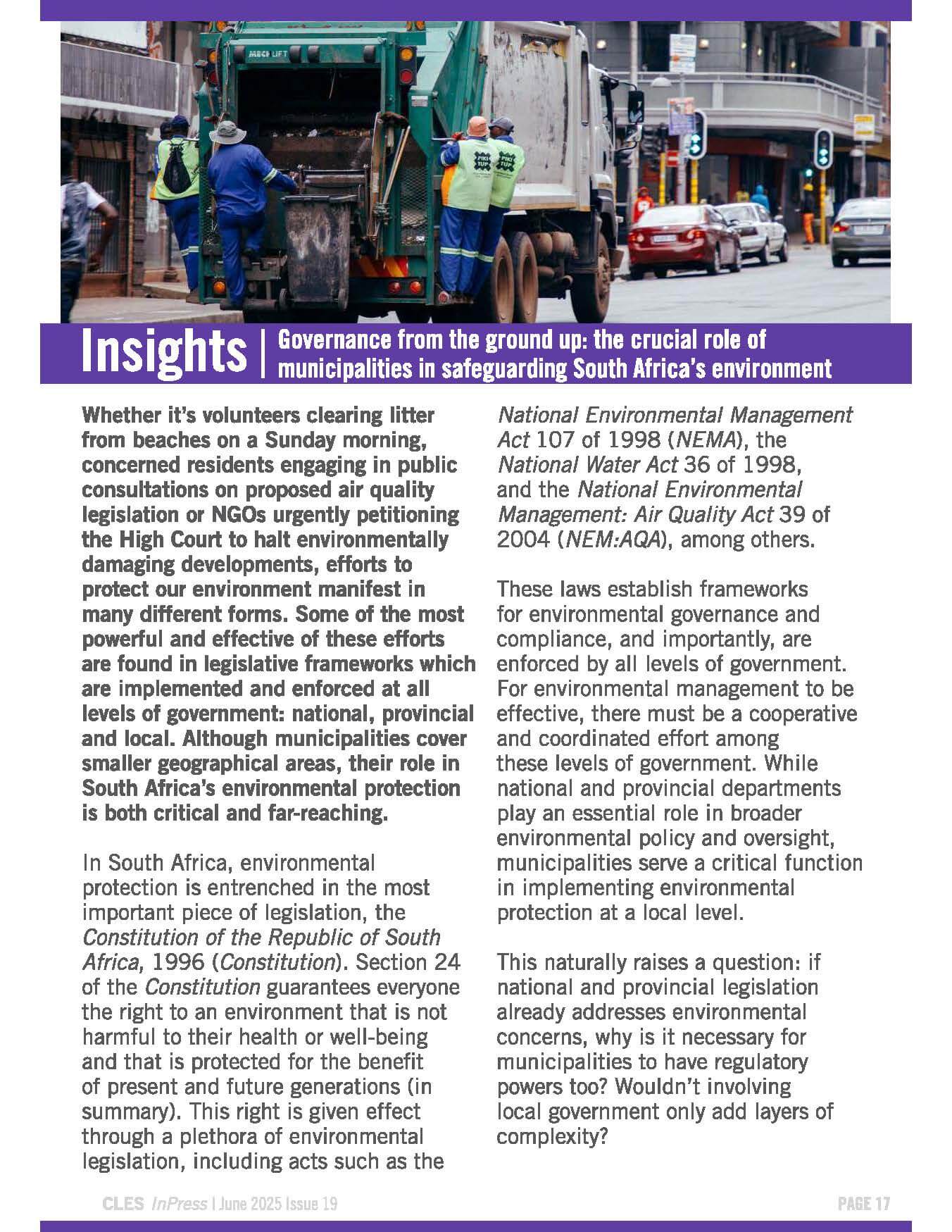 Governance from the ground up: The crucial role of municipalities in safeguarding South Africa's environment