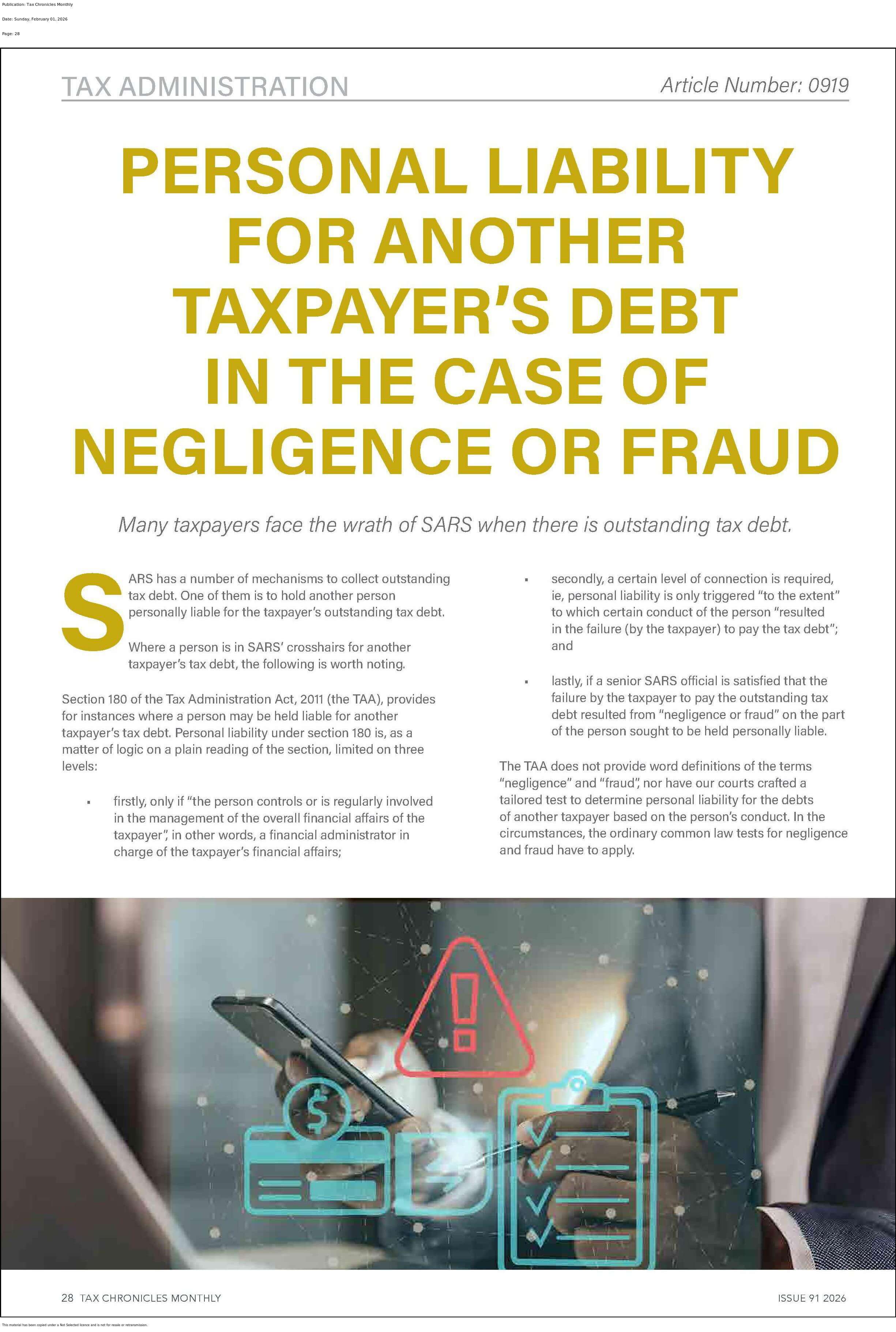 PERSONAL LIABILITY FOR ANOTHER TAXPAYER’S DEBT IN THE CASE OF NEGLIGENCE OR FRAUD